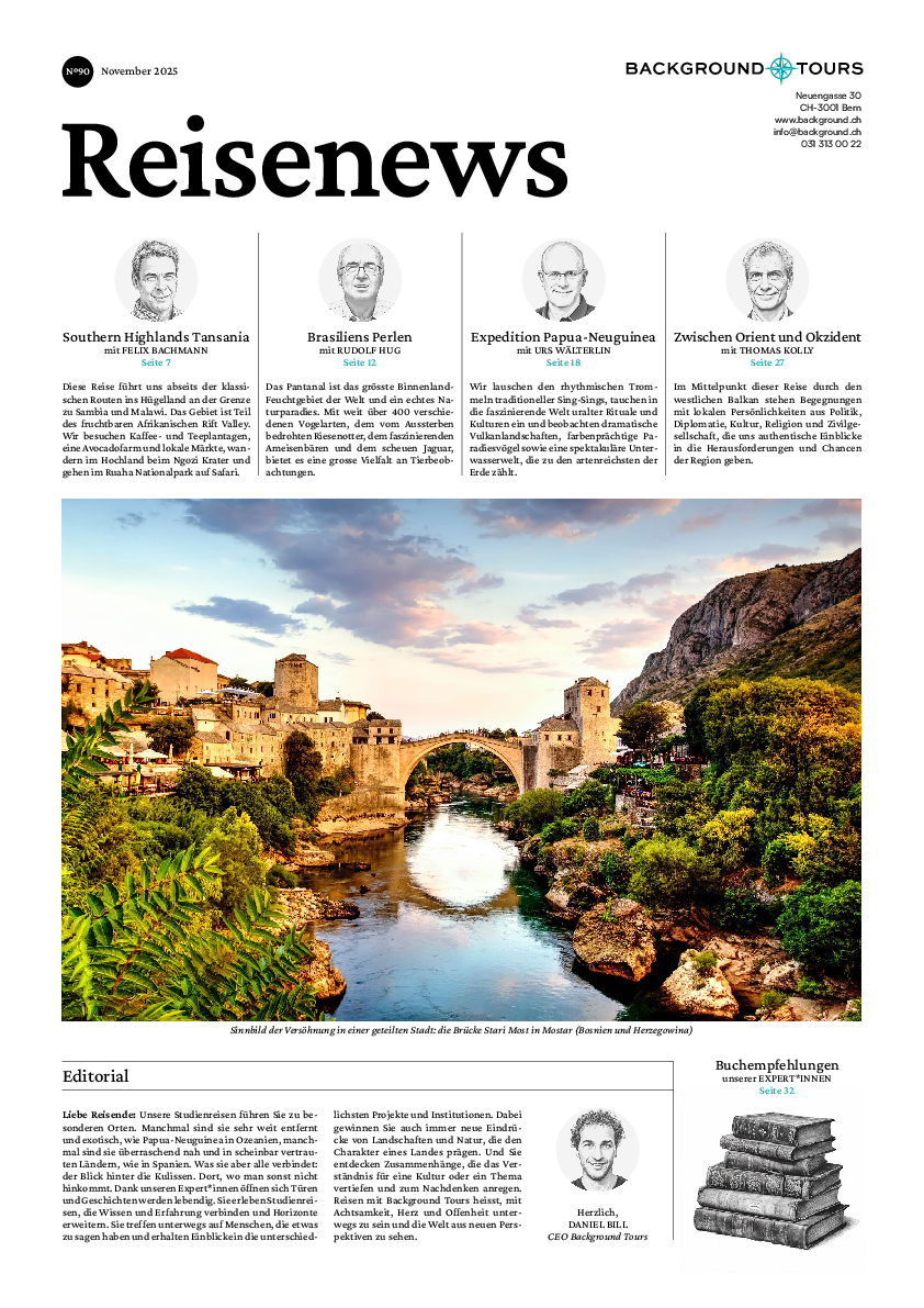 Unsere Mitarbeiter*innen planen aussergewöhnliche Erlebnisse, unsere Expert*innen öffnen Türen zu besonderen Begegnungen und Sie als Reisende bringen Offenheit und Neugier mit. In den Reisenews finden Sie aktuelle Reisen, daneben ein paar ausgewählte Hintergrundgeschichten.