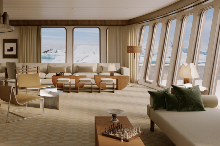Die «Captain Arctic» verfügt über 19 Kabinen für maximal 36 Passagiere. Die Innenräume, entworfen von der Innenarchitektin Joséphine Fossey, sind minimalistisch gestaltet. Der Fokus liegt auf natürlichen, nachhaltigen Materialien. An Bord gibt es ein Restaurant, eine Bibliothek, ein wissenschaftliches Labor sowie einen kleinen Spa-Bereich mit Sauna, Fitnessraum und Yogakursen. Auch Kunstworkshops unter Anleitung eines Künstlers gehören zum Programm. «Dank der überschaubaren Grösse bleiben wir flexibel. Zeigt sich ein spektakulärer Sonnenuntergang, passen wir den Zeitplan an, damit alle den Moment in Ruhe geniessen können», sagt Sophie.